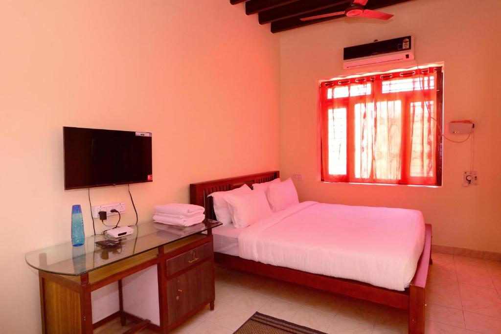 Villa Dumont in Puducherry offers a spacious, recently renovated villa with three bedrooms and five bathrooms. The property features a garden, terrace, and free WiFi, ensuring a comfortable stay.Guests enjoy private check-in and check-out services, laundry, outdoor seating, family rooms, bicycle parking, breakfast in the room, express services, and room service. Free on-site parking is available.